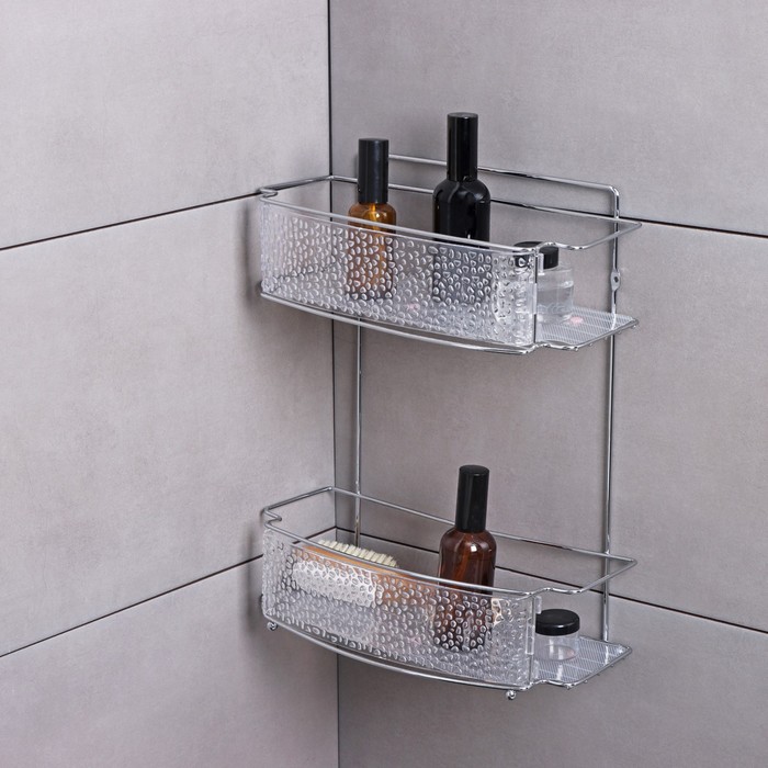 Угловая 4-х ярусная полка — удобный и вместительный аксессуар для ванной комнаты. Подходит для хранения небольших полотенец, косметических и хозяйственных средств.