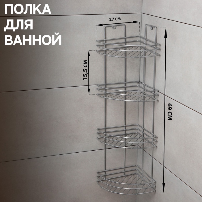 Полка угловая 4-х ярусная, 27×21×76 см, хром — Характеристики