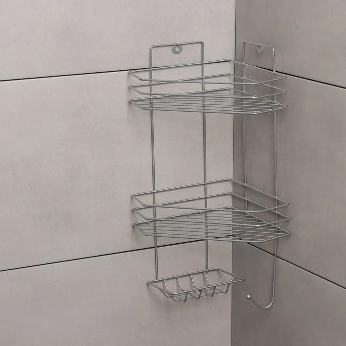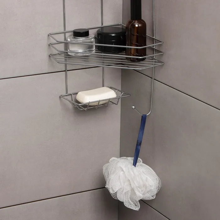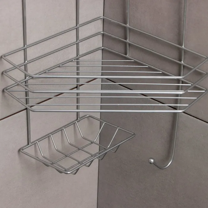 Полка угловая с мыльницей и вешалкой 2-х ярусная, 25,5×42,5 см, цвет хром — Характеристики