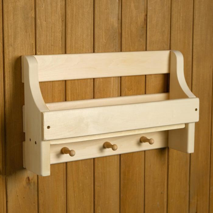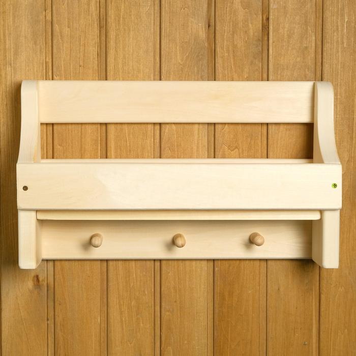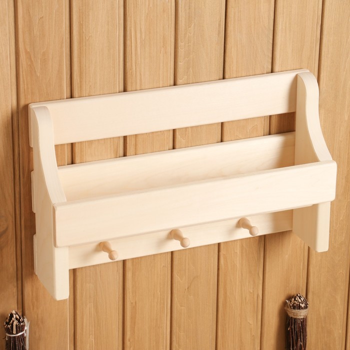Полка - вешалка для бани и сауны «Универсальная», 50×30×12 см, деревянная, 3 крючка, «Добропаровъ» — Характеристики