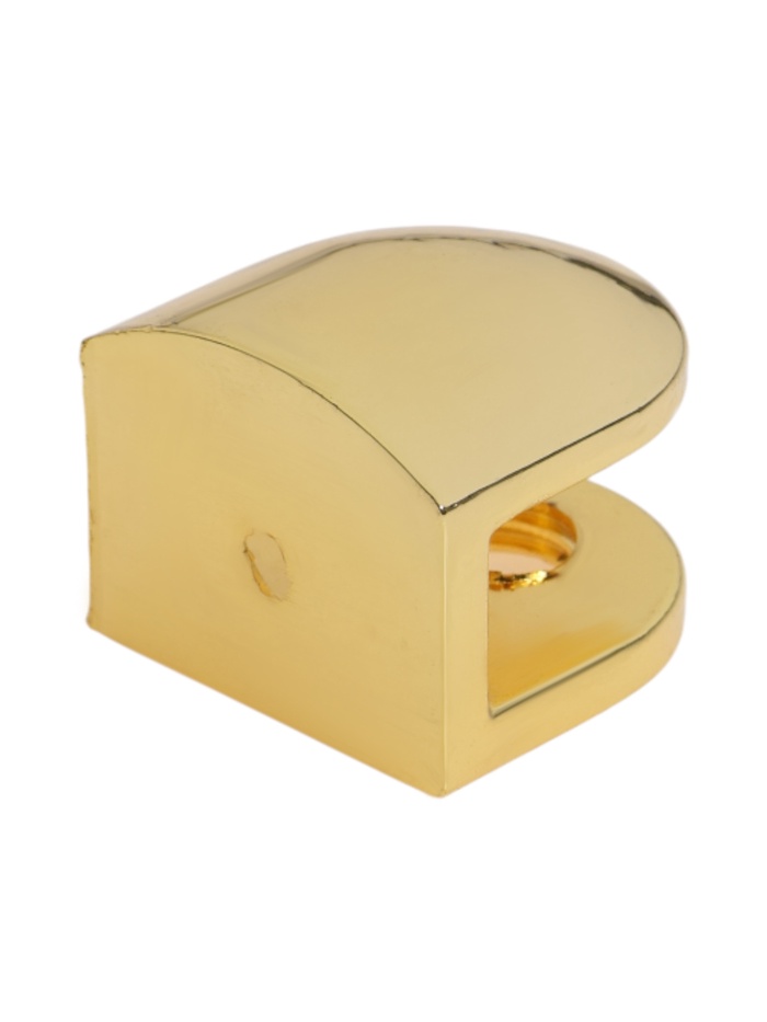Держатель для полок золотого цвета — мебельная фурнитура для крепления стеклянных полок. Подходит для шкафов-витрин и стеллажей.