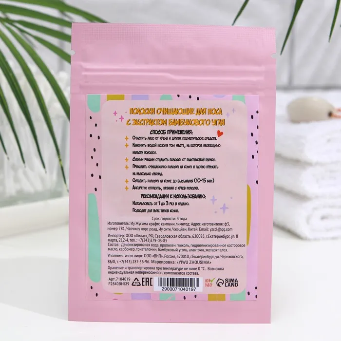 Очищающая полоска для носа с экстрактом бамбукового угля: