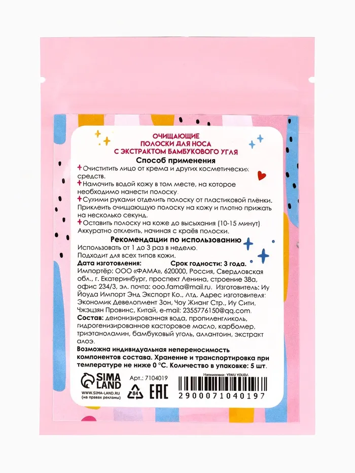 Полоски очищающие для носа с экстрактом бамбукового угля, набор 5 шт. — Характеристики