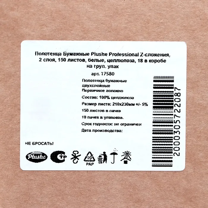 Бумажные полотенца Plushe Professional предназначены для использования в диспенсерах. Полотенца имеют Z-сложение, 2 слоя.