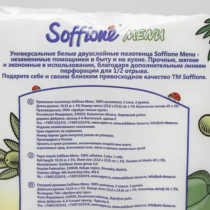 Полотенца бумажные Soffione Menu, 2 слоя, 3 рулона — Характеристики