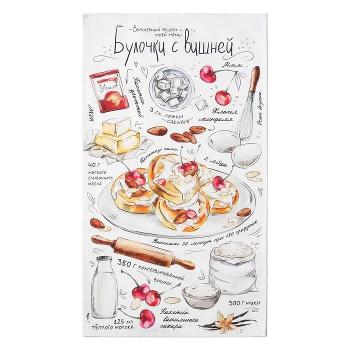 Полотенце "Булочка" 40х73 см, 100% хл, саржа 190 гр/м2 — Характеристики