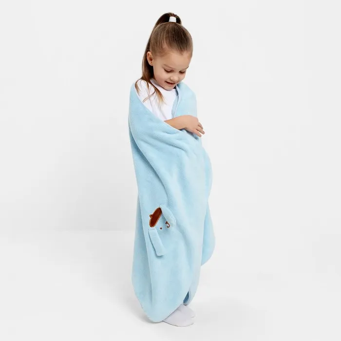 Полотенце детское Крошка Я «Зайчик», 70х140 см, цвет голубой, 100% полиэстер, 360г/м2 — Характеристики