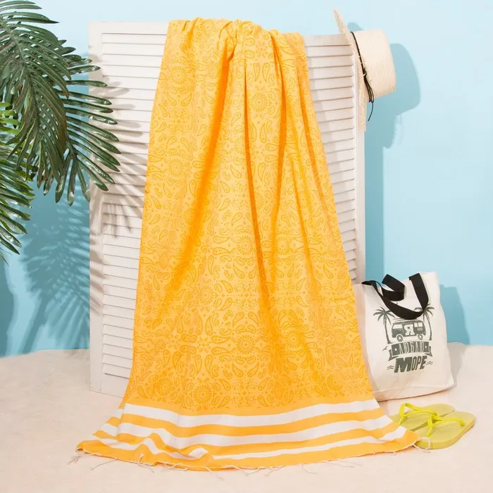Полотенце - пештемаль пляжное «Полосы», 100×180 см, 100% хл, 238 г/м², жёлтое