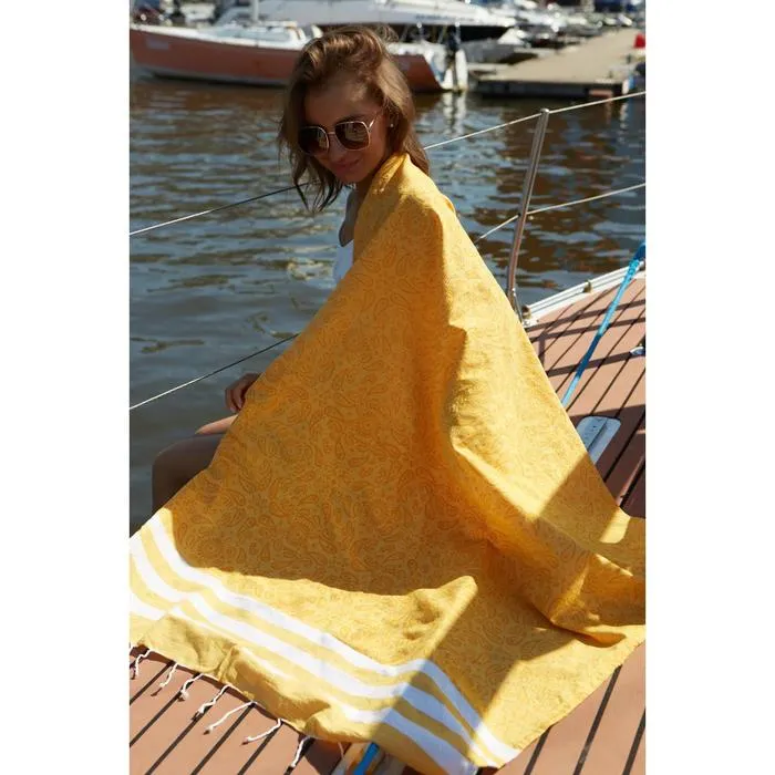 Полотенце для ванны Пештемаль Этель "Персия" 90х170см, 150г/м,80% хл, 20% п/э, желтый
