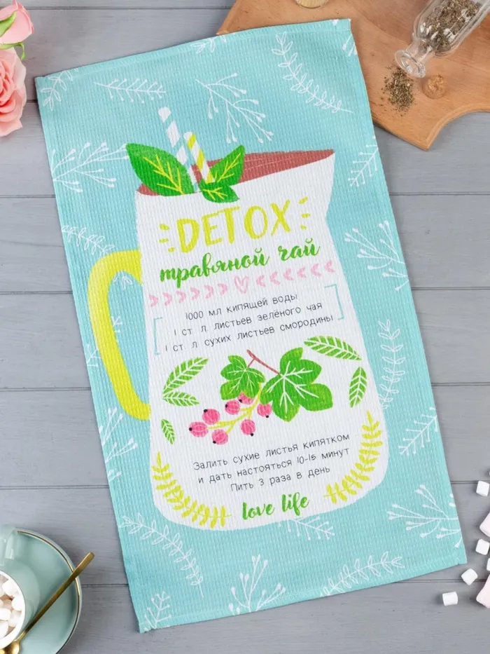 Полотенце Доляна Detox 35х60 см, 100% хлопок, вафля 160 г/м2 — Характеристики