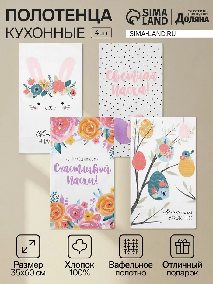 Полотенце Доляна «Пасхальные яйца» 35×60 см, 100% хлопок, вафля — Характеристики