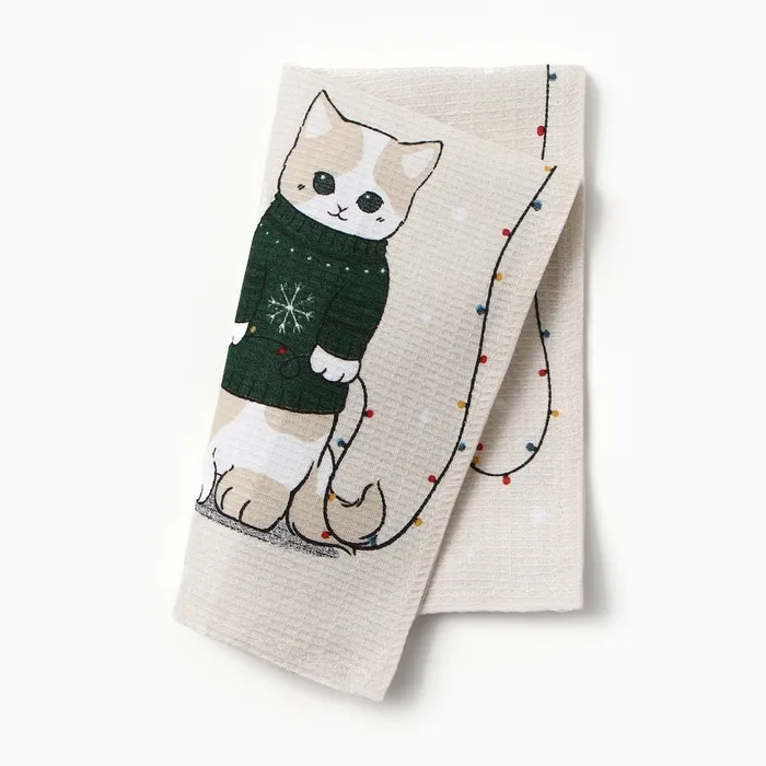 Полотенце Доляна «Помурчим в новом году» 28×46 см, 100% хл, вафля 160 г/м² — Характеристики