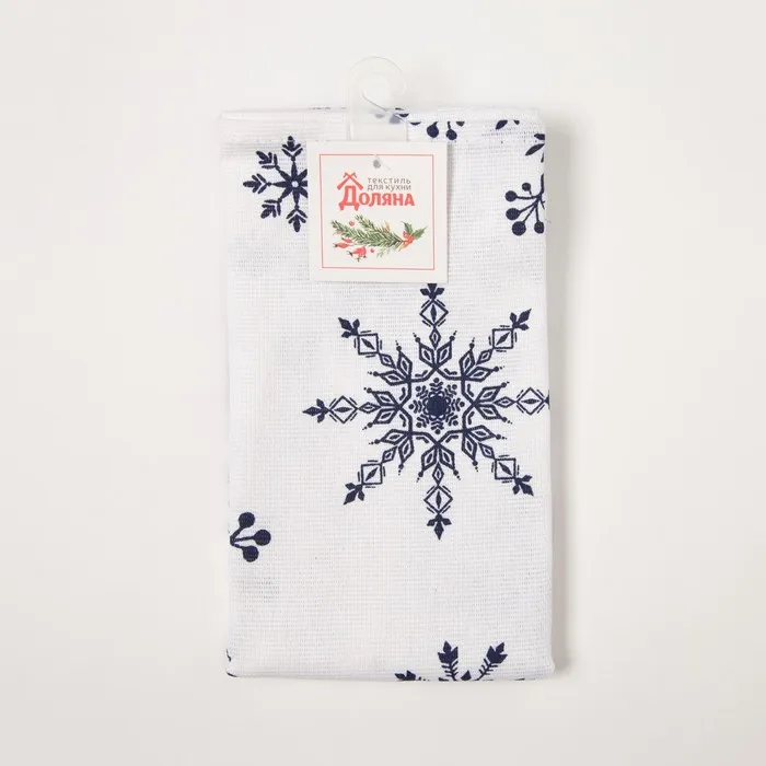 Полотенце "Доляна" Синие снежинки 40х70 см, 100% хлопок, 164 г/м2 — Характеристики
