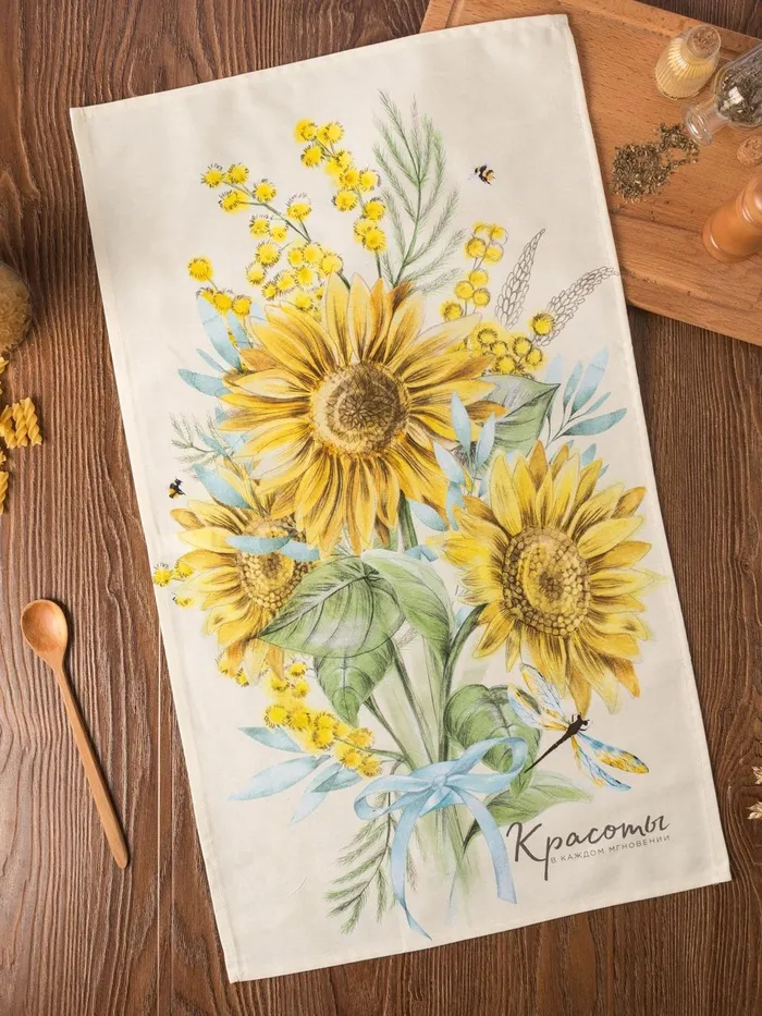 Полотенце "Этель" Солнечные цветы 40х73 см, 100% хлопок, саржа 190 г/м2 — Характеристики