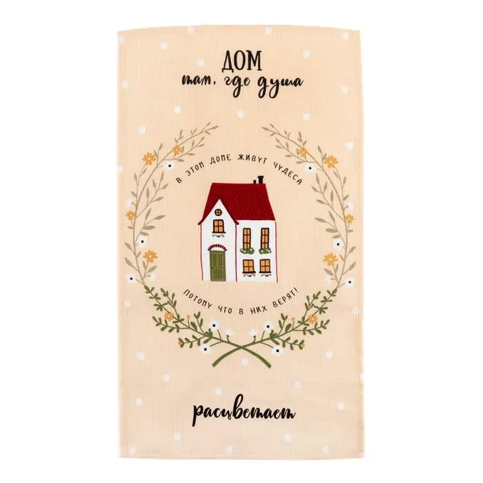 Полотенце кухонное Доляна «Дом там, где душа» 35х60 см, 100% хлопок, 160г/м2 — Характеристики