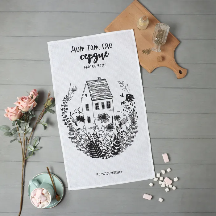 Полотенце кухонное Доляна «Дом там где сердце» 35х60 см, 100% хл, 160г/м2 — Характеристики