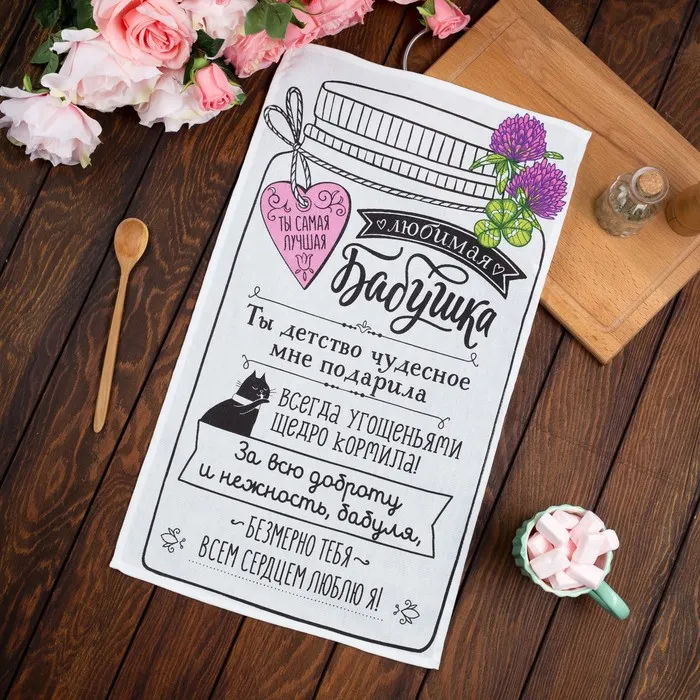 Полотенце кухонное Доляна «Любимая бабушка» 34х60 см, рогожка, 100% хлопок 160 гр/м — Характеристики