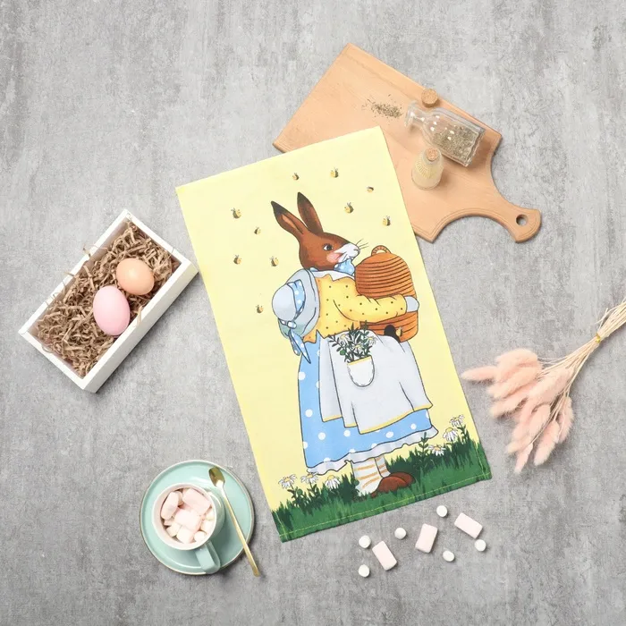 Полотенце кухонное Доляна «Зайка» 28×46 см, рогожка, 100% хлопок, 160 г/м² — Характеристики