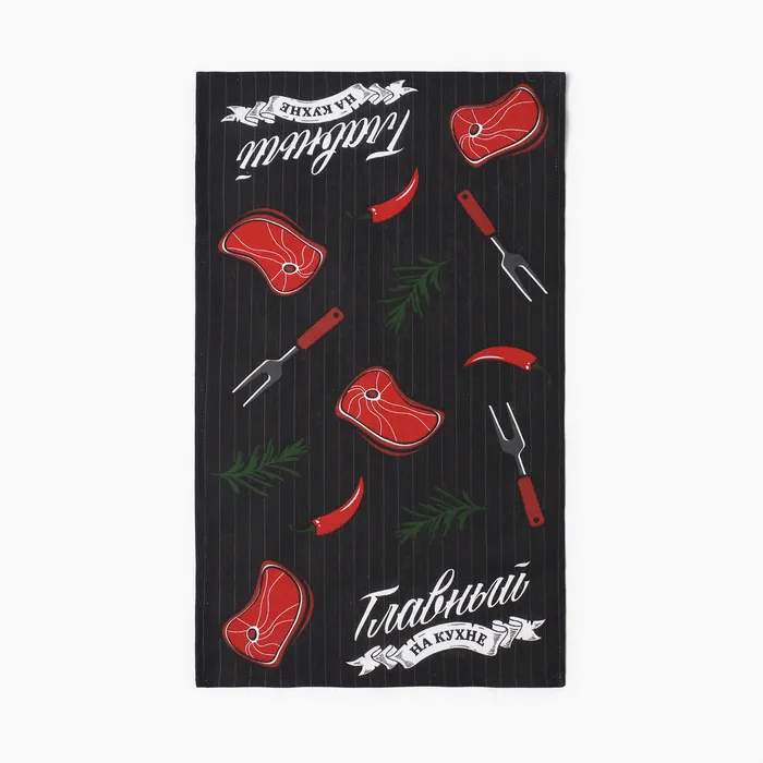 Полотенце кухонные Доляна "Главный по мясу" 35х60 см, рогожка, 100% хл, 160г/м2 — Характеристики