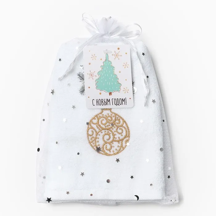 Полотенце махровое "Еловый шар" 30х60 см, 100% хлопок, 340 г/м2 — Характеристики