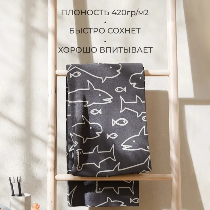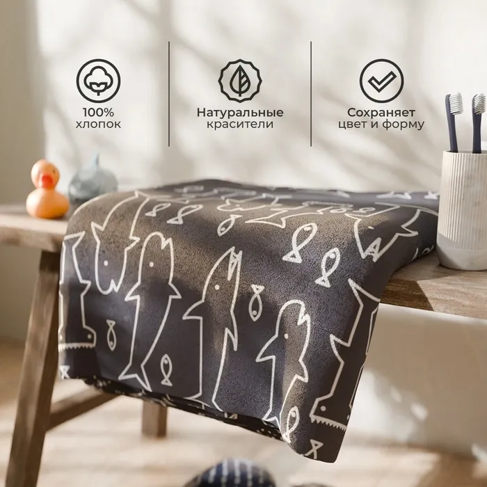 Полотенце махровое "Этель" Акулы, 70х130 см, 100% хлопок, 420гр/м2 — Характеристики