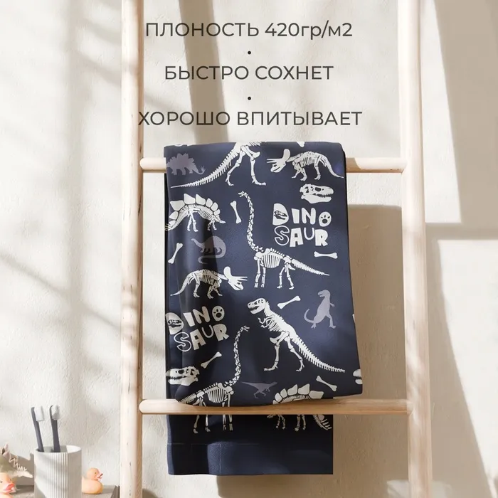 Полотенце махровое Этель Dinosaur, 70×130 см, 100% хлопок, 420 г/м², сине-белое — Характеристики