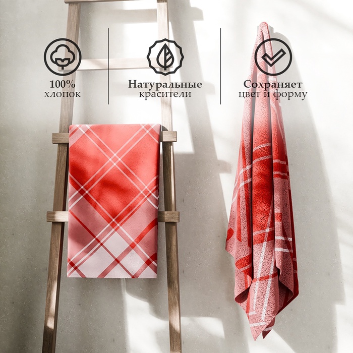 Полотенце махровое «Этель Клетка», 50×90 см, хлопок 100%, красное — Характеристики