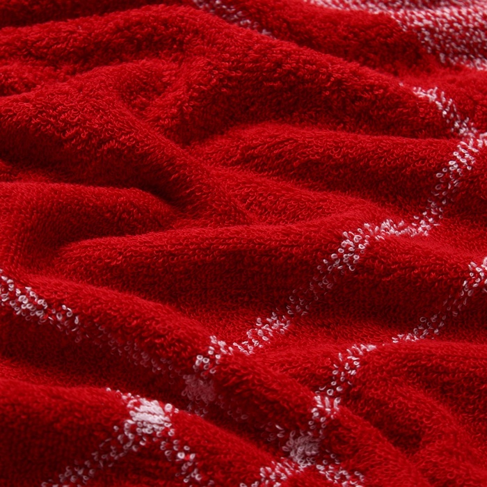 Это махровое полотенце для лица — практичный и тёплый новогодний сувенир для взрослых. Классический красный цвет в сочетании с клетчатым узором пестроткани создаёт праздничное настроение. Плотная хлопковая махра 420 г/м² мягко впитывает влагу, а компактный размер 50x90 см делает его удобным для ежедневного использования.
