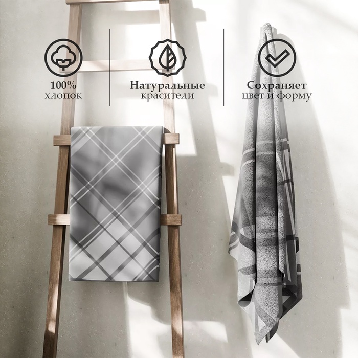 Полотенце махровое «Этель. Клетка», 50×90 см, хлопок 100%, серое — Характеристики