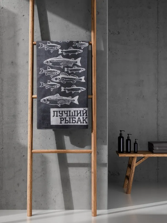 Полотенце махровое Этель «Лучший рыбак», 50×90 см, 100% хлопок, 420 г/м², серое — Характеристики