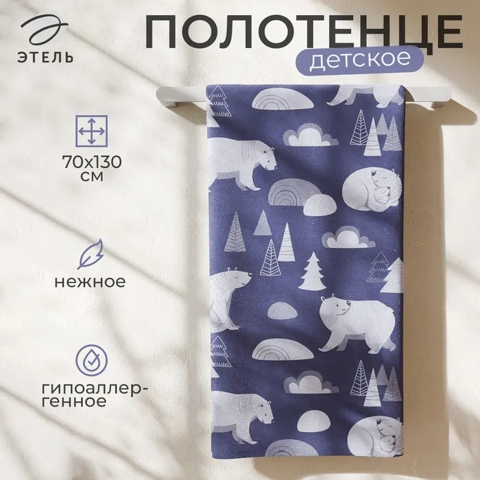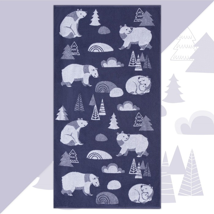 Полотенце махровое Этель «Медведи», 70×130 см, 100% хлопок, 420 г/м², синее