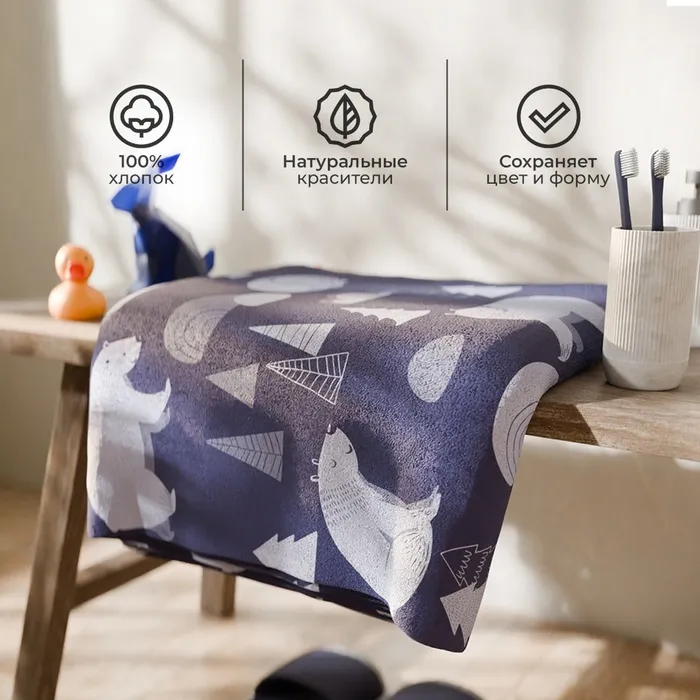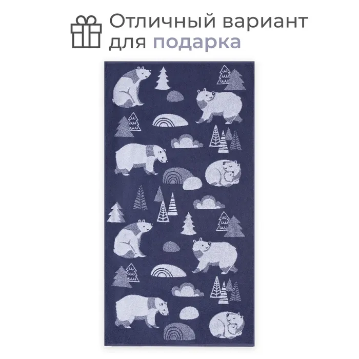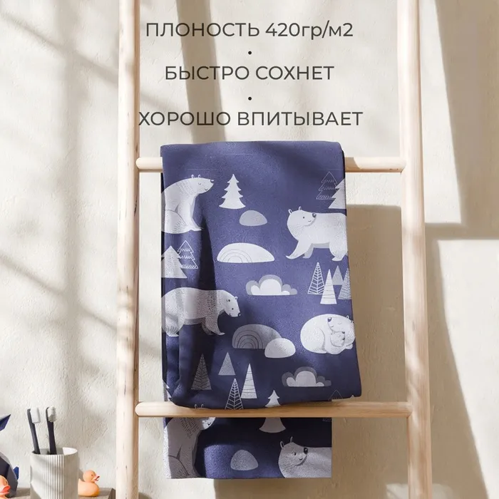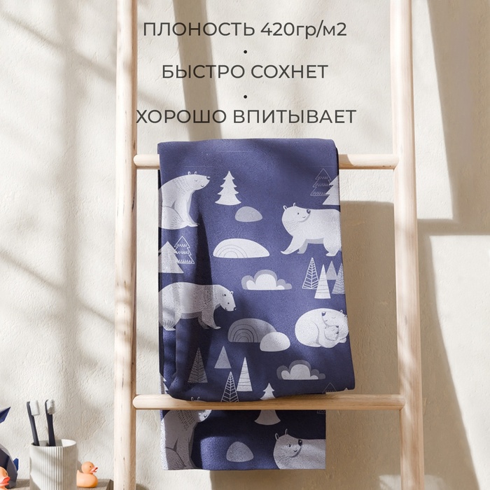 Полотенце махровое Этель «Медведи», 70×130 см, 100% хлопок, 420 г/м², синее — Характеристики