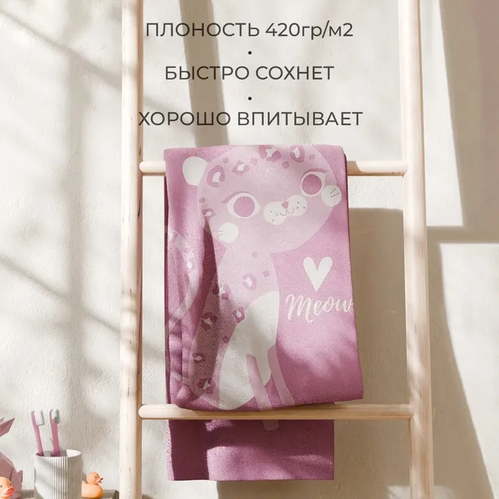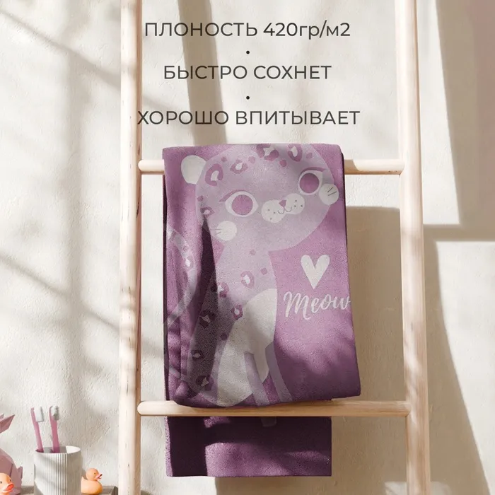 Полотенце махровое Этель «Милый леопард», 50х90 см, 100% хлопок, 420 г/м2 — Характеристики