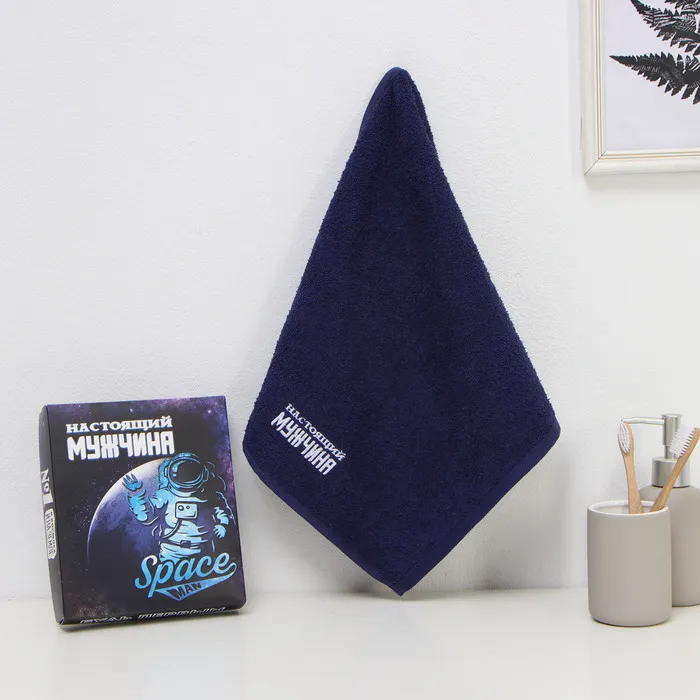Полотенце махровое «Этель. Настоящий мужчина», 35×50+-5 см, хлопок 100%, синее — Характеристики