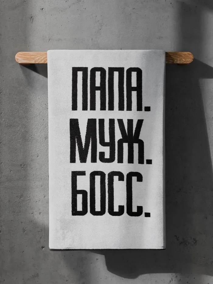 Полотенце махровое Этель «Папа Муж Босс», 70×130 см, 100% хлопок, 420 г/м², чёрно-белое — Характеристики