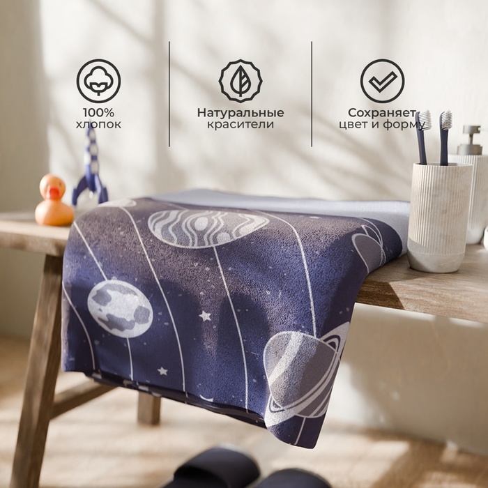 Полотенце махровое Этель «Солнечная система», 70х130 см, 100% хлопок, 420 г/м2 — Характеристики