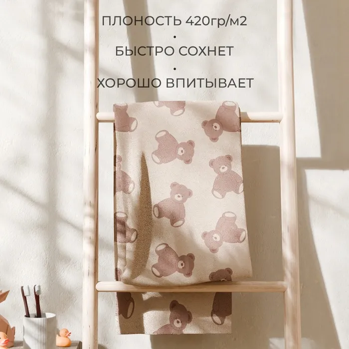 Полотенце махровое Этель Teddy bear, 70×130 см, 100% хлопок, 420 г/м², бежево-коричневое — Характеристики