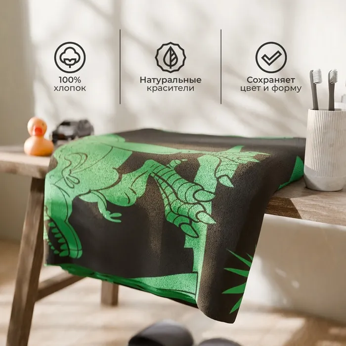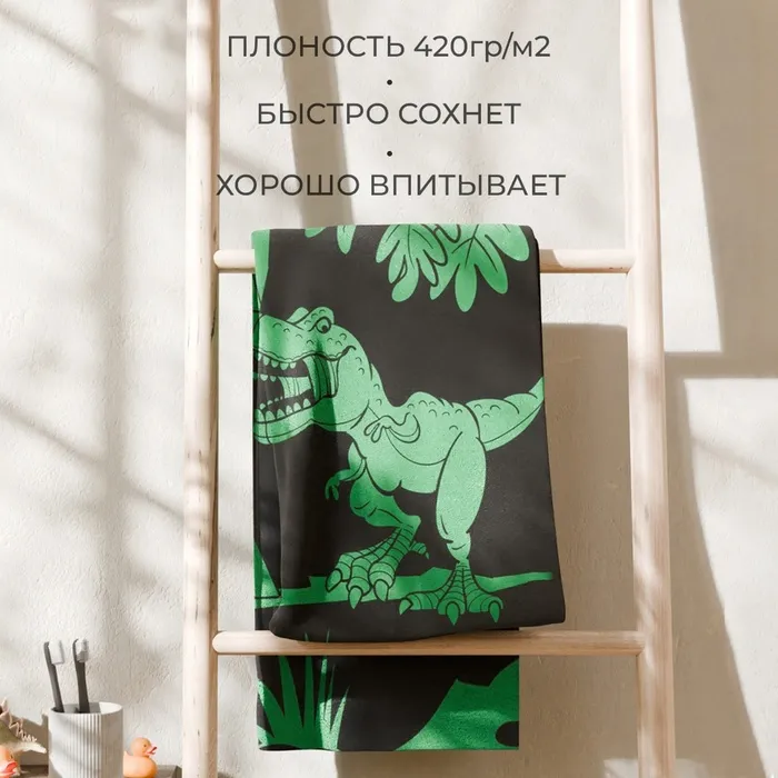 Полотенце махровое Этель «Тиранозавр», 50х90 см, 100% хлопок, 420 г/м2 — Характеристики