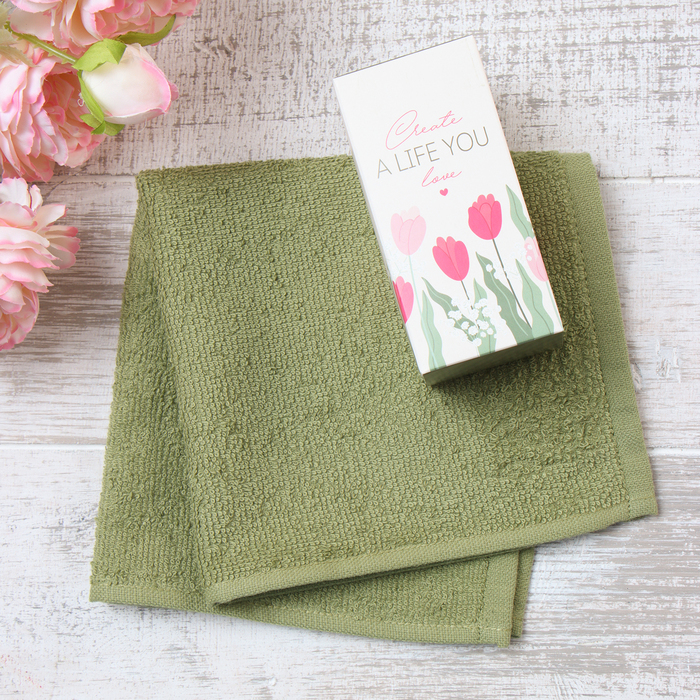 Полотенце махровое «Этель. Тюльпаны», 30×30 см, 100% хлопок, зелёное — Характеристики