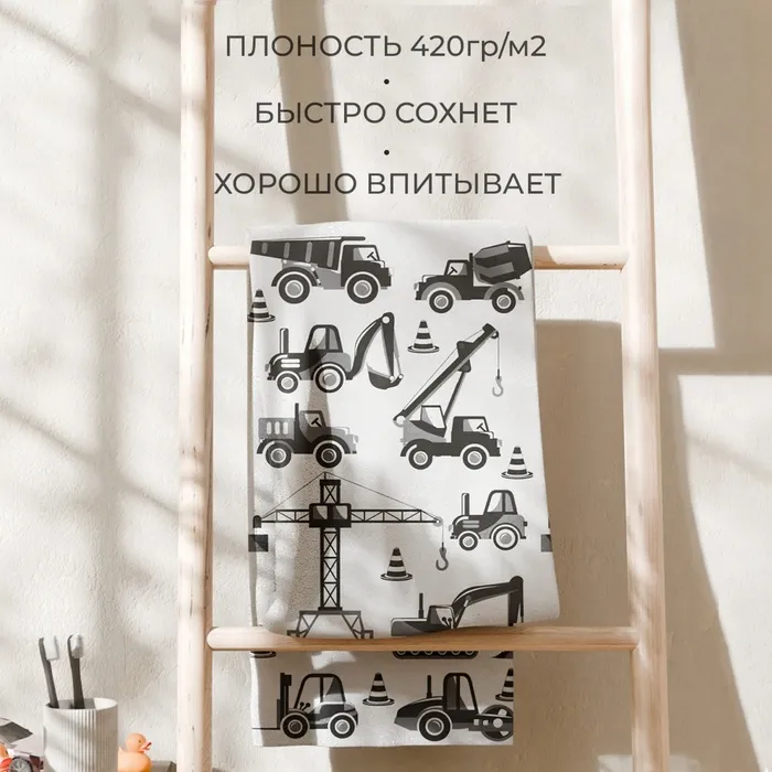 Полотенце махровое Этель "Транспорт", 70х130 см, 100% хлопок, 420гр/м2 — Характеристики
