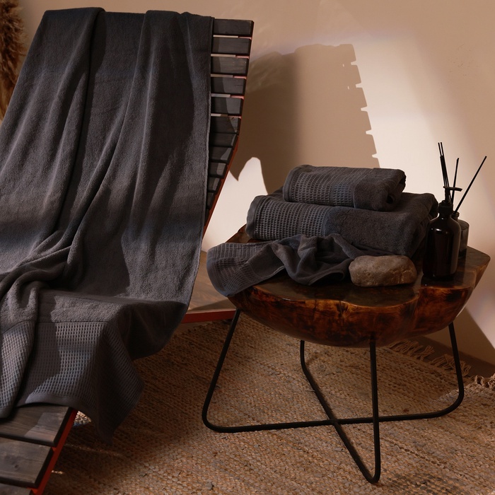 Полотенце махровое SL HOME: Waffle «Гри Сандре» 100×180 см, хлопок 100%, серое — Характеристики