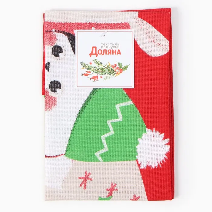 Полотенце новогоднее Доляна "Новогодний котик" 28х46 см, 100% хл, рогожка 164 г/м2 — Характеристики