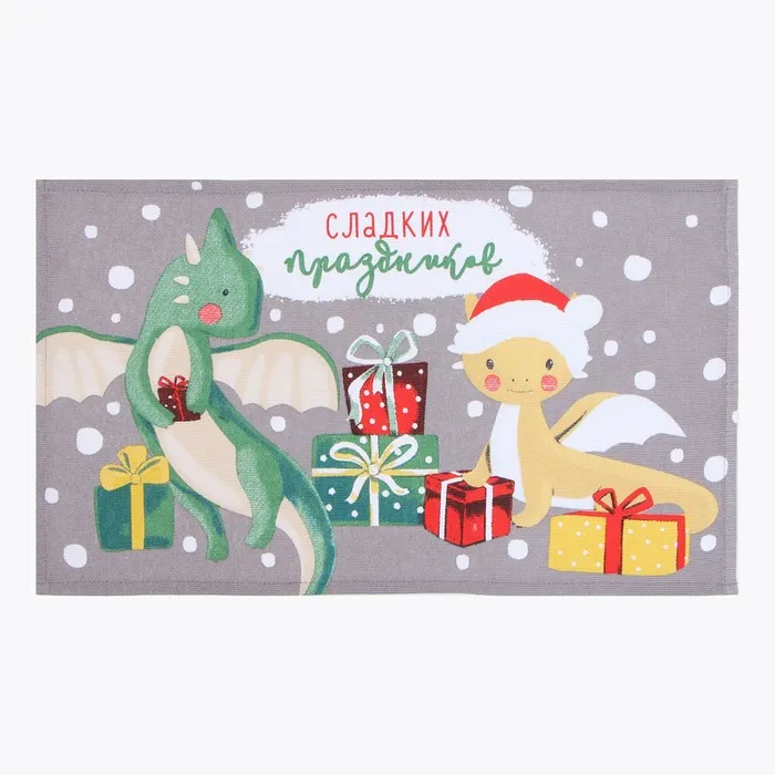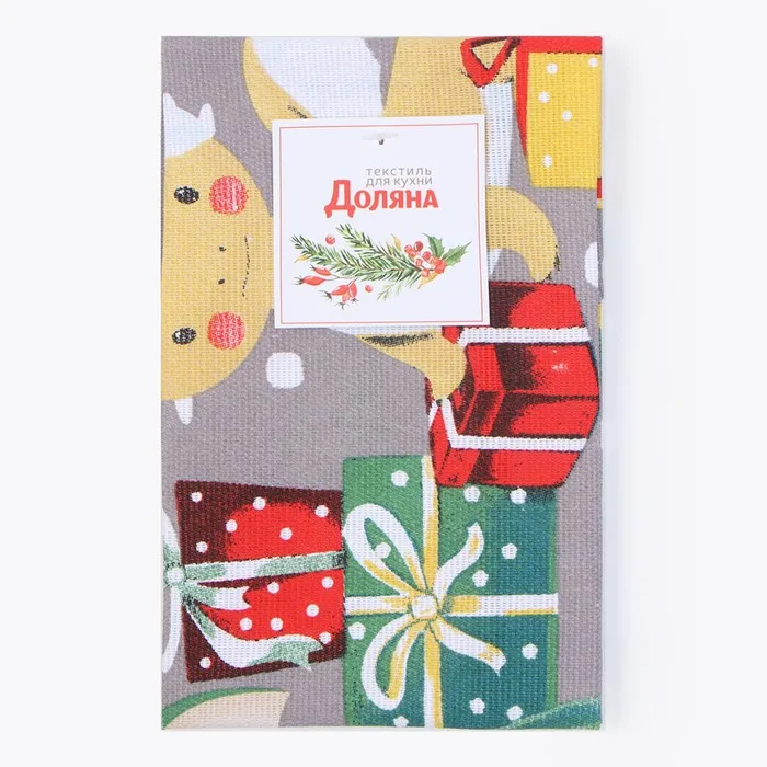 Полотенце новогоднее Доляна "Сладких подарков" 28х46 см, 100% хл, рогожка 164 г/м2 — Характеристики