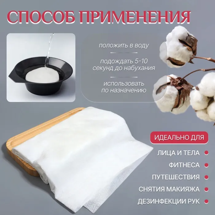 Простота и внимание к мелочам — вот что отличает это полотенце. Его плотная текстура напоминает мягкую вату, которая "обнимает" кожу, не вызывая раздражения. Оно быстро впитывает влагу, словно губка, но при этом остается легким и приятным на ощупь. Прессованный формат позволяет экономить место при