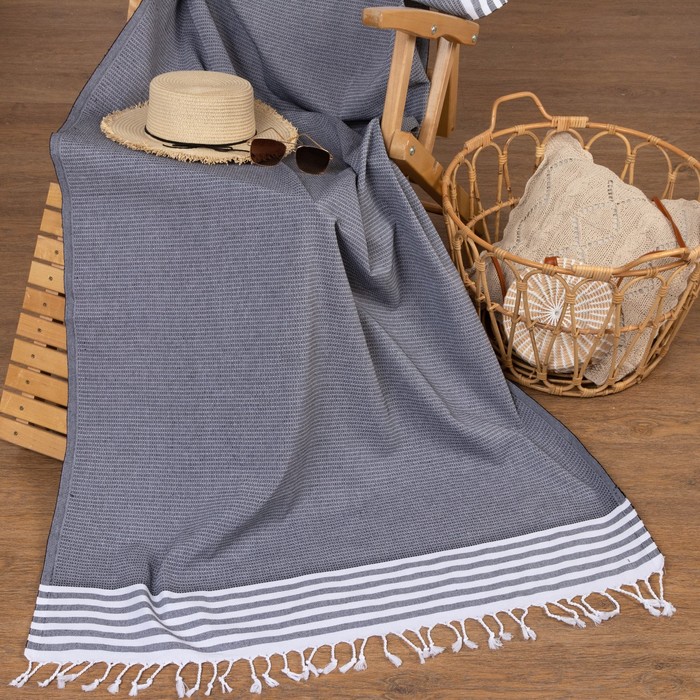 Полотенце - пештемаль пляжное Waffle, 100×180 см, 100 % хл, 211 г/м², серое — Характеристики