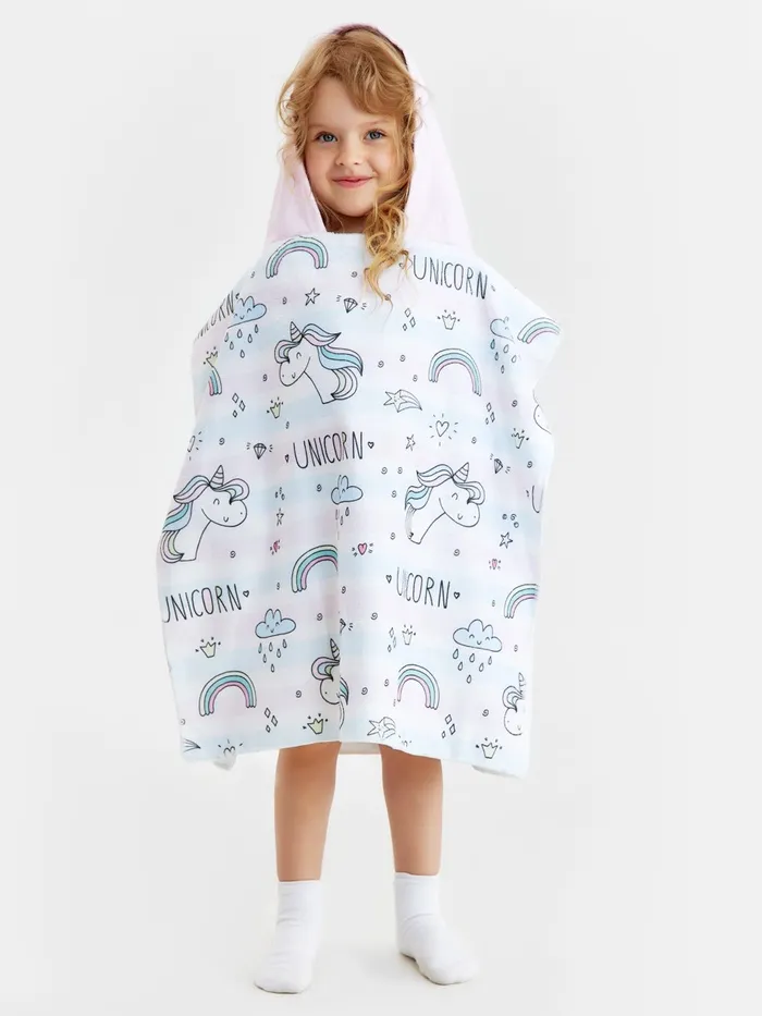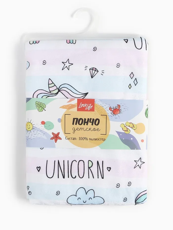 Полотенце-пончо детский LoveLife "Единороги" 60х120 см, 100% пэ, 225 г/м2