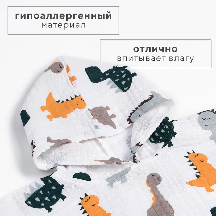 Полотенце - пончо детское LoveLife «Дино», 100% хлопок, 235 гр/м2 — Характеристики
