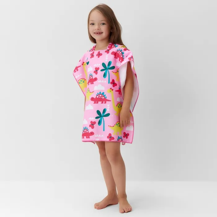 Полотенце-пончо детское LoveLife "Динозавры", цв. розовый, 60х120 см, 100% пэ, 230 г/м2 — Характеристики