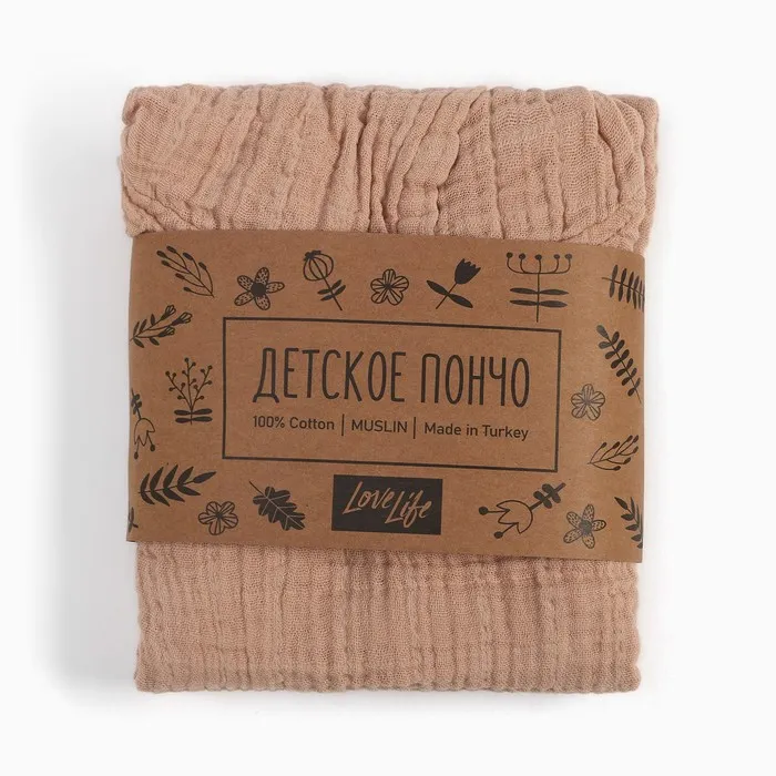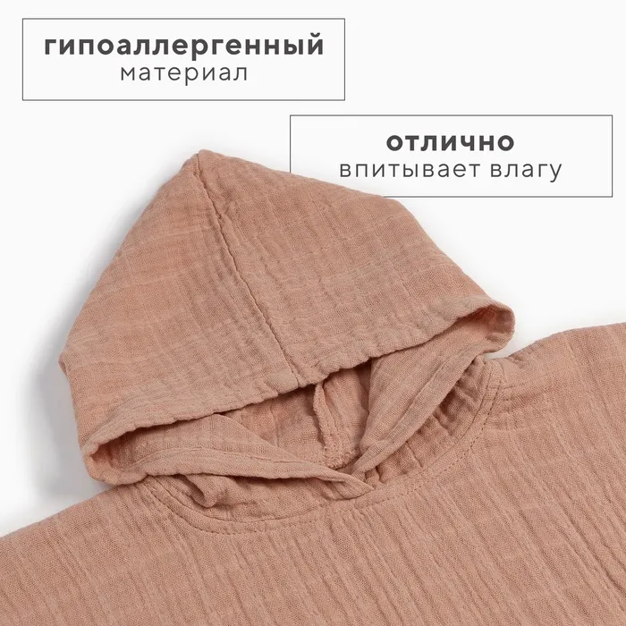 Полотенце - пончо детское LoveLife, муслиновое, 100% хлопок, 235 гр/м2, пудровое — Характеристики
