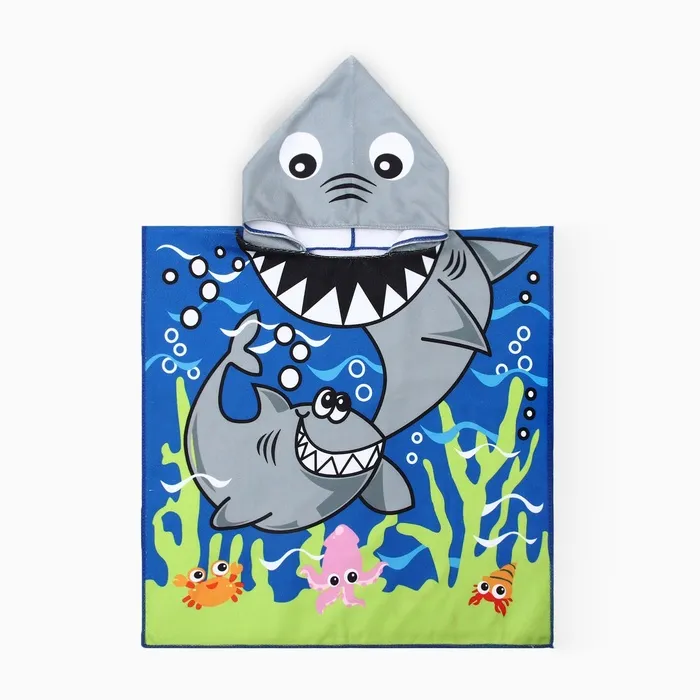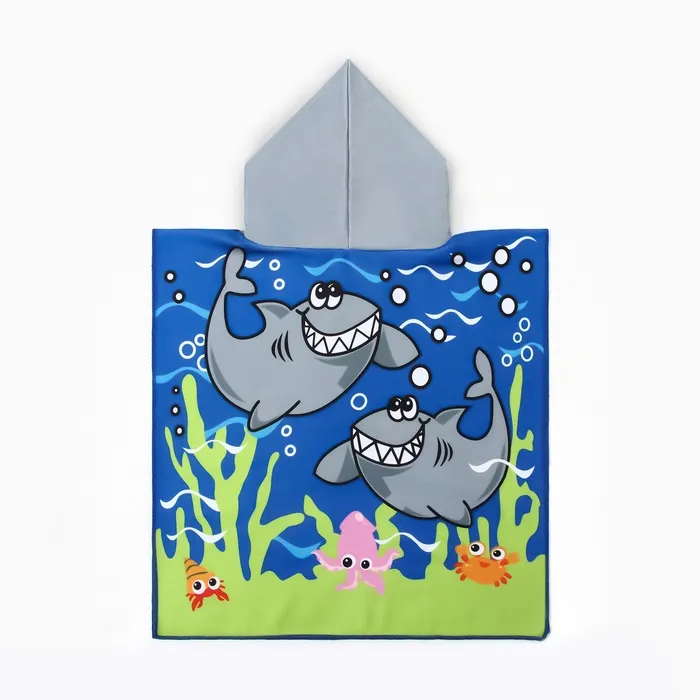 Полотенце-пончо детское махровое Крошка Я "Акулы" 60*120см, 100% пэ, микрофибра — Характеристики